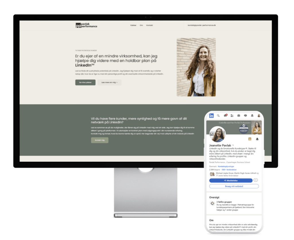 Jeanette hjælper virksomheder med LinkedIn. På bare 20 minutter fik hun nye indsigter om sit visuelle udtryk på sin hjemmeside og LinkedIn-profil. Hun fik bekræftet nogle af sine egne fornemmelser og en klarere forståelse af, hvad hendes brand signalerer.